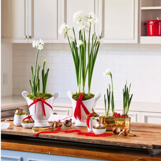 Paperwhites are one of those holiday elements that feel effortless yet incredibly chic. Whether you're styling a grand holiday table or adding a little winter charm to quiet corners, these blooms offer natural elegance and a touch of seasonal romance. They work beautifully with every decorating style—from classic traditional to modern minimal—and they play well with metallics, greenery, and warm wood tones.
